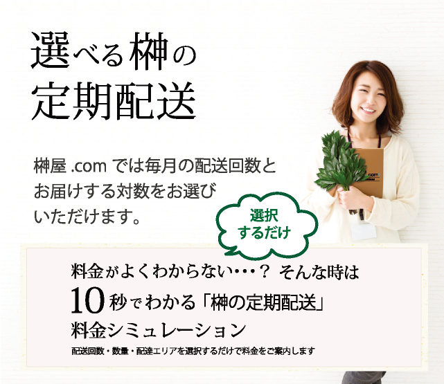 ※上記の料金は、南関東・関東・信越・東海・北陸・関西地域の榊定期宅配料金になります。